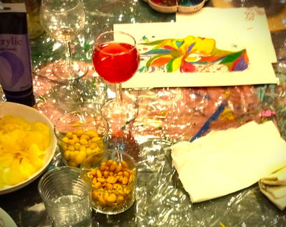 Un moment pour peindre et boire un apéro. Ambiance sympas, musique et papotage. L'idée c'est être créatif, ou juste se laisser à mettre de la couleur dans un coloriage, tout en dégustant une bonne boisson; alcoolisé ou pas. Brunhild du Trait d'Union nous prépare en plus des toast! Merci à elle.