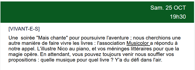 Petite nouveauté depuis 2022: nous chantons du gospel. Novice ou pas, venez chanter du negro spiritual, du gospel, rythmé jazz, blues... Ingrid Vigné est notre coach vocal. Merci à elle pour cette nouvelle activité. ON SE REGALE !!!!!!